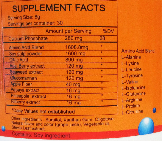NutritiousAcai Berry ExtractRich in dietary fiberOkara powderandApple pectinandGlucomannan,