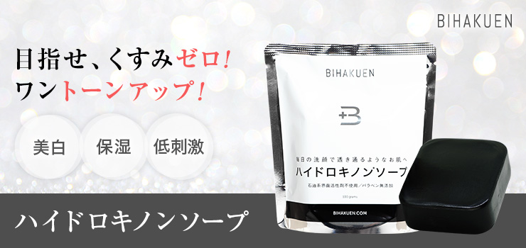 BIHAKUEN® Hydroquinone Soap is for everyone who is seriously considering skin whitening measures.A whitening soap made for safe useIt does not contain peeling ingredients (AHA, BHA),hypoallergenicIt also whitens skin, and its whitening effect moisturizes delicate skin.Moisturizing ingredientsIt is also rich in