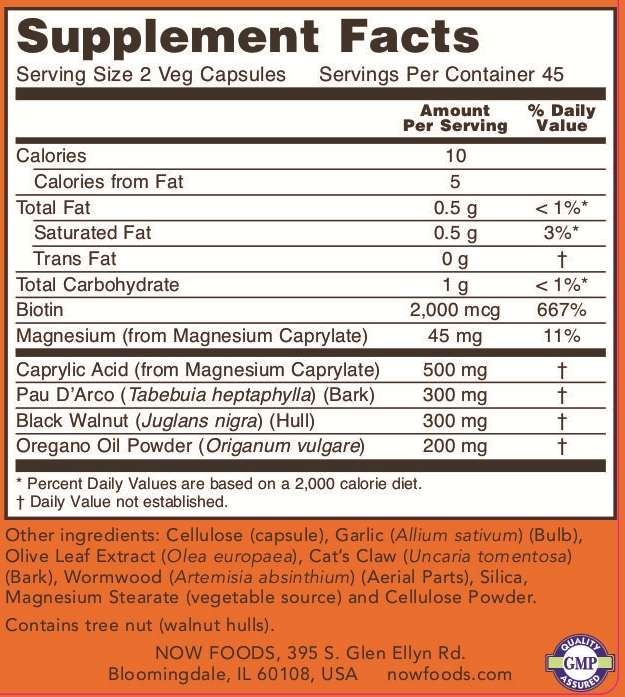 Biotin, magnesium, caprylic acidIt contains a rich blend of useful ingredients, including natural defense herbal ingredients.Pau d'Arco, black walnut, oreganoIt helps regulate your intestinal flora and encourages daily Candida support habits.