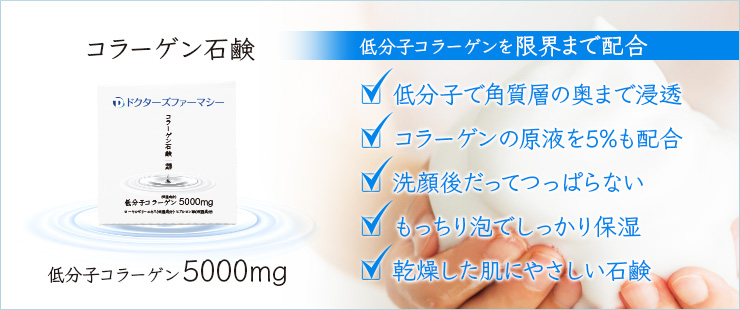 Doctor's Pharmacy collagen soapContains 5000mg of low molecular weight collagenThis is the ultimate collagen soap developed to provide the highest level of moisturizing effect.