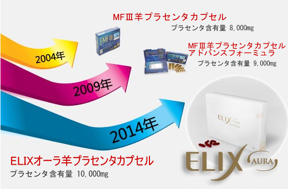 Elix Aura is a supplement containing highly purified sheep placenta extract.Sheep placenta supplements are processed into a form that is easy for Japanese people to take.I did.
