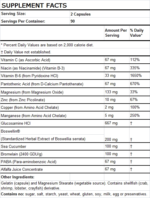 Formulated with glucosamine and sea cucumber extract as its main ingredients, it helps to nourish, regenerate, and maintain the cartilage tissue in joints.