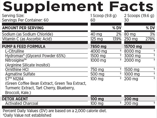 NO2 Black Muscle+Pump isL-Citrulline, Ornithine, Agmatine, Hydromax(Hydromax),Nitrosidine(Nitrosigine, a 6-hour sustained complex ingredient)Increased stamina and energy, and nitric oxide productionIt contains a balanced blend of essential ingredients. It also contains a blend of green coffee extract, green tea extract, turmeric extract, tart cherry, brook, broccoli, and kale.S7 N1284, Activated Charcoaland,Powerful AntioxidantAlso included: