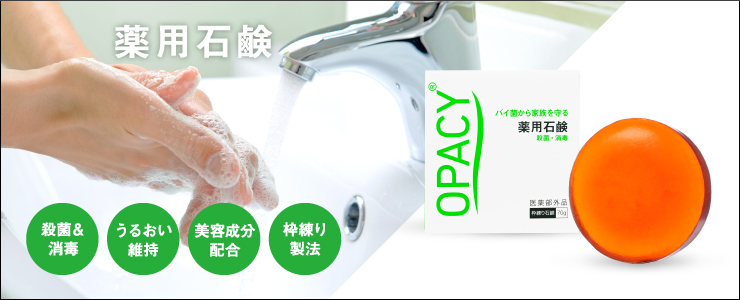 Opathy Medicated Soapis a bar soap containing the active ingredient isopropyl methylphenol.It thoroughly removes dirt while also sterilizing and disinfecting, blocking bacteria. It also contains plenty of moisturizing and beauty ingredients.It is formulated to leave your hands feeling clean and beautiful.