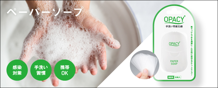 In public buildings, malls, parks and outdoor facilities,There is no soap when you want to wash your handsHowever, if you have Opathy Paper Soap,Such a "problem" will not occur.You can go out anytime, anywhere with the peace of mind of knowing you can wash your hands with soap.Also useful for preventing infectious diseasesis.